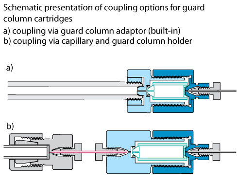 Our guard column cartridges are a very convenient and economical type of guard column. Guard columns can be installed directly in a suitable columns head (built-in type) or they can be mounted in a separate holder and connected to the column via a capillary.