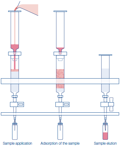 Depending on the concentration of the analytes, eluates can be analyzed immediately, or the organic solvent is evaporated. The pH value of the aqueous solution can be altered on the column, which enables elution of different compounds of a sample under optimized conditions. Under certain circumstances, acidic, neutral, and basic compounds can be fractionated in this way.