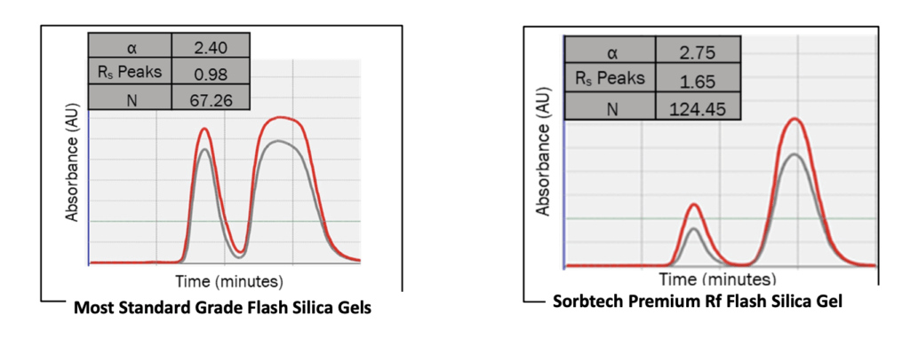 Our narrow pore size distribution limits unwanted diffusion and poor mass transfer effects. These factors, when not adequately managed can lead to peak broadening, peak tailing, and loss of separation efficiency.